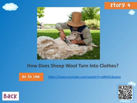 Story 4 How Does Sheep Wool Turn Into Clothes? Go to Link https://www.youtube.com/watch?v=x0HeCL6nano Back