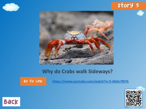 Story 5 Why do Crabs walk Sideways? Go to Link https://www.youtube.com/watch?v=3-Ab0e7BtYk Back