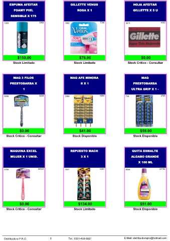 Distribuidora P.R.O. 5 Tel.: 0351-458-8927 E-Mail: distribuidorapro@hotmail.com