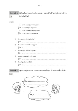 กิจกรรมที ให้ผู้เรียนฝึกตอบคําถามเกี ยวกับความชอบ – ไม่ชอบต่อไปนี โดยใช้รูปแบบตามสํานวน