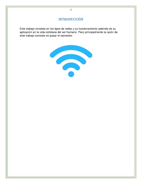 2 INTRODUCCIÒN Este trabajo consiste en los tipos de redes y su funcionamiento además de su aplicación en la vida cotidiana del ser humano. Pero principalmente la razón de este trabajo consiste en pasar el semestre.