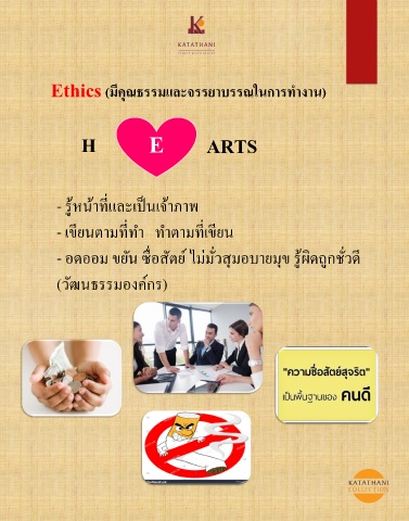 Ethics (มีคุณธรรมและจรรยาบรรณในการท างาน) H E ARTS - รู้หน้าที่และเป็นเจ้าภาพ - เขียนตามที่ท า ท าตามที่เขียน - อดออม ขยัน ซื่อสัตย์ ไม่มั่วสุมอบายมุข รู้ผิดถูกชั่วดี (วัฒนธรรมองค์กร)