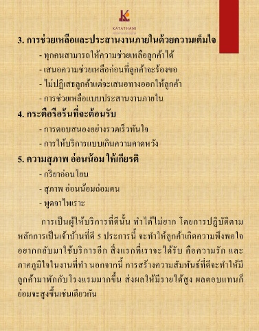 หลักการเป็นเจ้าบ้านที่ดี 5 ประการนี้ จะท าให้ลูกค้าเกิดความพึงพอใจ