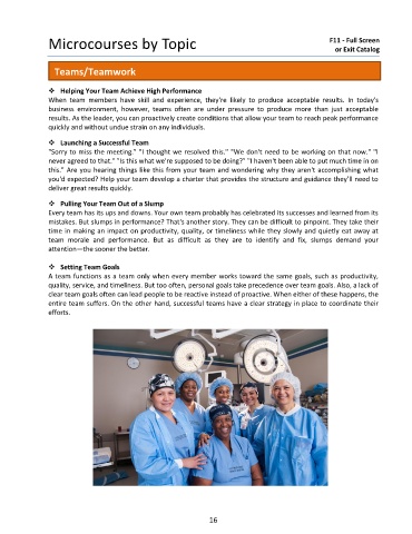 quality, service, and timeliness. But too often, personal goals take precedence over team goals. Also, a lack of