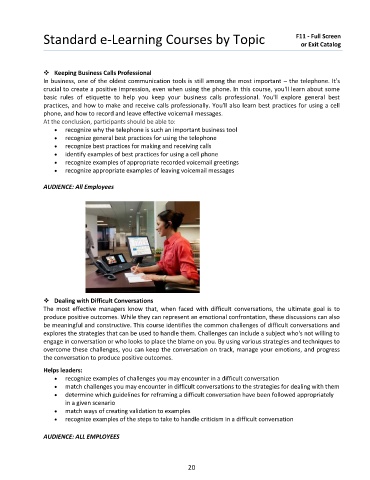 Standard e-Learning Courses by Topic F11 - Full Screen