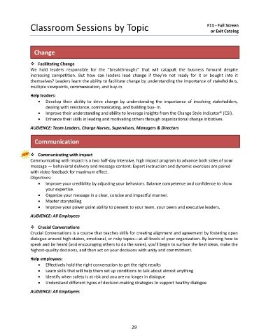 Classroom Sessions by Topic or Exit Catalog