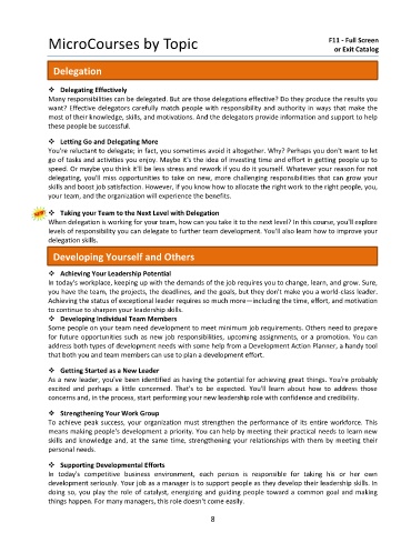 MicroCourses by Topic F11 - Full Screen