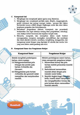 D. Kompetensi Dasar dan Pengalaman Belajar