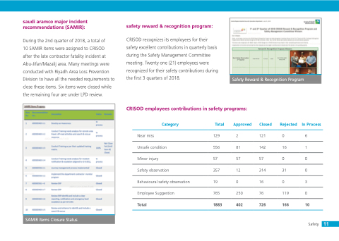 10 SAMIR items were assigned to CRISOD after the late contractor fatality incident at Abu-Jifan/Mazalij area. Many meetings were conducted with Riyadh Area Loss Prevention Division to have all the needed requirements to close these items. Six items were closed while the remaining four are under LPD review.
