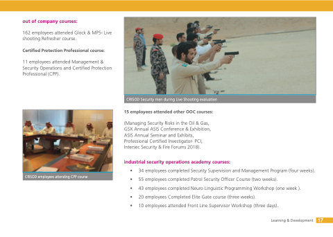 • 34 employees completed Security Supervision and Management Program (four weeks).