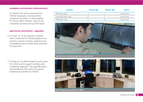 To enhance the work environment for CRISOD employees, the department completed renovation of several gates/ ID offices/ admin facilities. Some of the completed activities during 2018 follow: