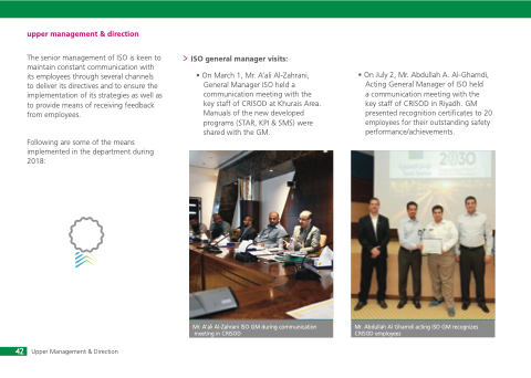 a communication meeting with the key staff of CRISOD in Riyadh. GM presented recognition certificates to 20 employees for their outstanding safety performance/achievements.