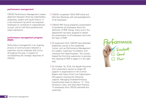 CRISOD Performance Management creates alignment between three key stakeholders, employees, leaders and Saudi Aramco. It