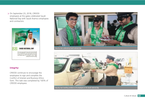 On September 23, 2018, CRISOD employees at the gates celebrated Saudi National Day with Saudi Aramco employees and contractors.