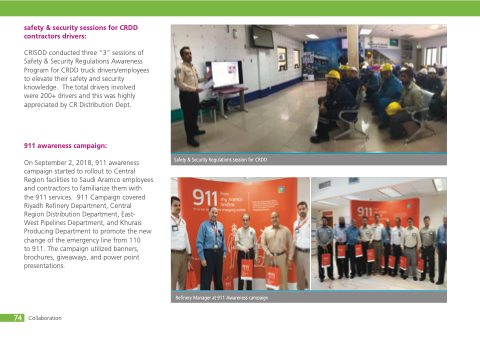 On September 2, 2018, 911 awareness campaign started to rollout to Central Region facilities to Saudi Aramco employees and contractors to familiarize them with