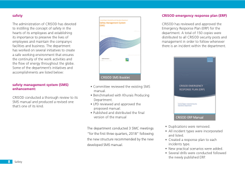 its importance to preserve the lives of employees and maintain the company›s facilities and business. The department has worked on several initiatives to create a safe working environment that ensures the continuity of the work activities and the flow of energy throughout the globe. Some of the department’s initiatives and accomplishments are listed below: