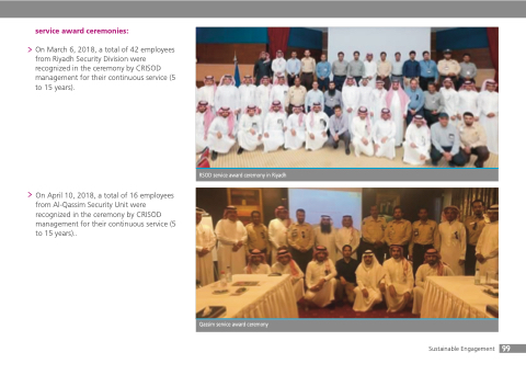 On March 6, 2018, a total of 42 employees from Riyadh Security Division were recognized in the ceremony by CRISOD management for their continuous service (5 to 15 years).