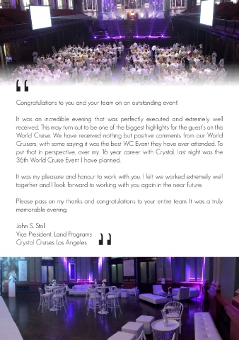 creating the one event that will stand out. We know there is just one chance to It was an incredible evening that was perfectly executed and extremely well