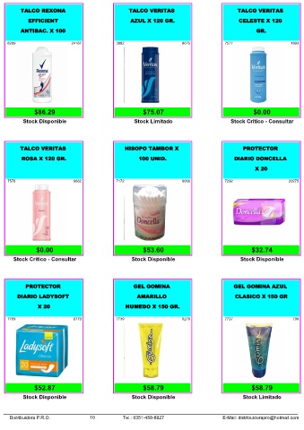 Distribuidora P.R.O. 10 Tel.: 0351-458-8927 E-Mail: distribuidorapro@hotmail.com
