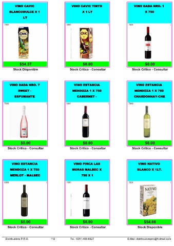 Distribuidora P.R.O. 112 Tel.: 0351-458-8927 E-Mail: distribuidorapro@hotmail.com