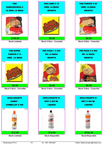 Distribuidora P.R.O. 119 Tel.: 0351-458-8927 E-Mail: distribuidorapro@hotmail.com