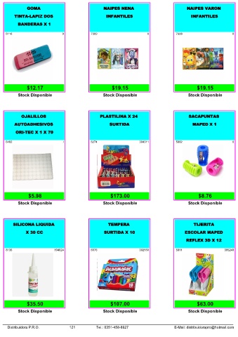 Distribuidora P.R.O. 121 Tel.: 0351-458-8927 E-Mail: distribuidorapro@hotmail.com