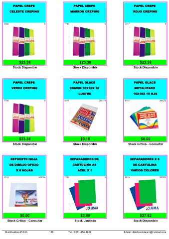 Distribuidora P.R.O. 128 Tel.: 0351-458-8927 E-Mail: distribuidorapro@hotmail.com