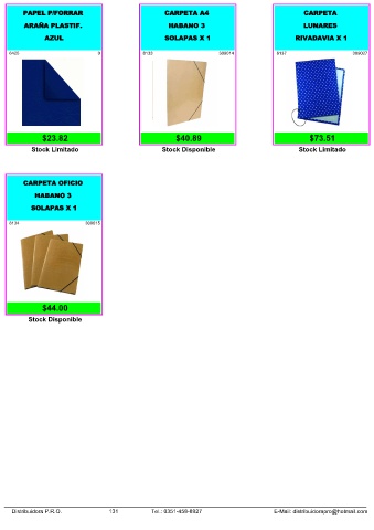 Distribuidora P.R.O. 131 Tel.: 0351-458-8927 E-Mail: distribuidorapro@hotmail.com
