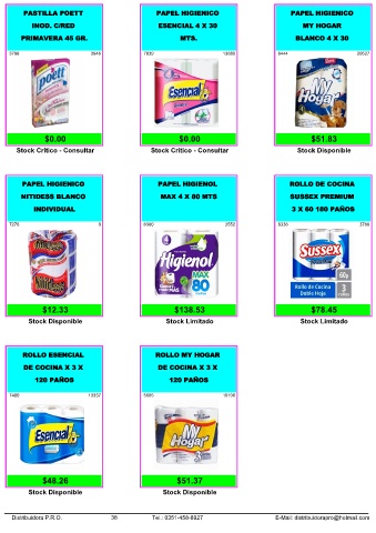 Distribuidora P.R.O. 38 Tel.: 0351-458-8927 E-Mail: distribuidorapro@hotmail.com