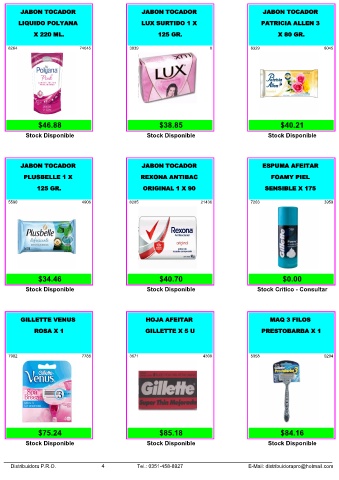 Distribuidora P.R.O. 4 Tel.: 0351-458-8927 E-Mail: distribuidorapro@hotmail.com