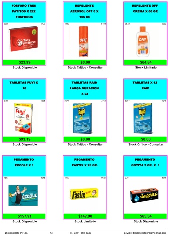Distribuidora P.R.O. 43 Tel.: 0351-458-8927 E-Mail: distribuidorapro@hotmail.com