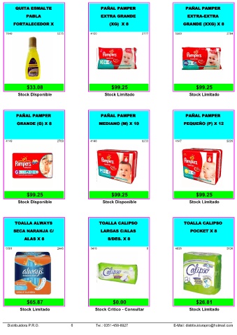 Distribuidora P.R.O. 6 Tel.: 0351-458-8927 E-Mail: distribuidorapro@hotmail.com
