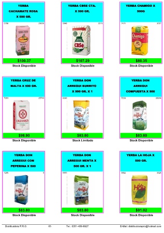 Distribuidora P.R.O. 65 Tel.: 0351-458-8927 E-Mail: distribuidorapro@hotmail.com