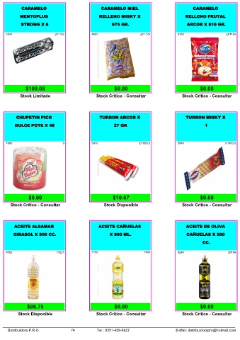 Distribuidora P.R.O. 74 Tel.: 0351-458-8927 E-Mail: distribuidorapro@hotmail.com