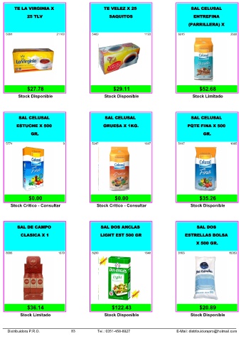 Distribuidora P.R.O. 83 Tel.: 0351-458-8927 E-Mail: distribuidorapro@hotmail.com