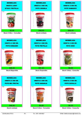 Distribuidora P.R.O. 85 Tel.: 0351-458-8927 E-Mail: distribuidorapro@hotmail.com