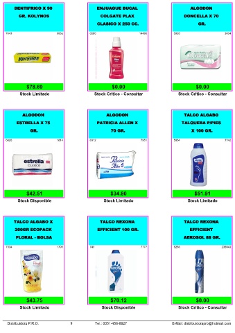 Distribuidora P.R.O. 9 Tel.: 0351-458-8927 E-Mail: distribuidorapro@hotmail.com