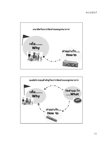 4/11/2017 แนวคิดในการจัดทําแผนบูรณาการ เพื่อ…… Why ทําอย่างไร…. How to องค์ประกอบสําคัญในการจัดทําแผนบูรณาการ เพื่อ…… วัดด้วยอะไร Why …..What ทําอย่างไร…. How to 11