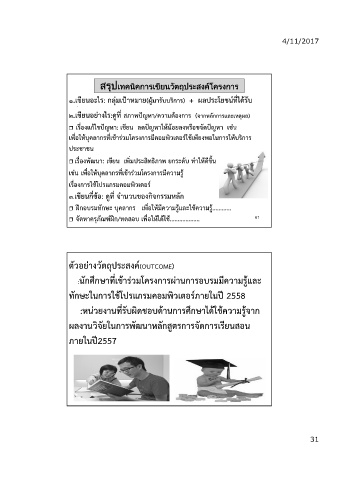 ตัวอย่างวัตถุประสงค์(OUTCOME)