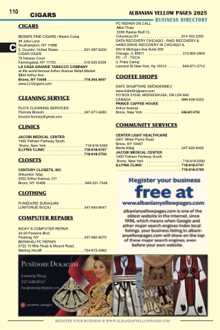REGISTER YOUR BUSINESS @ WWW.ALBANIANYELLOWPAGES.COM
