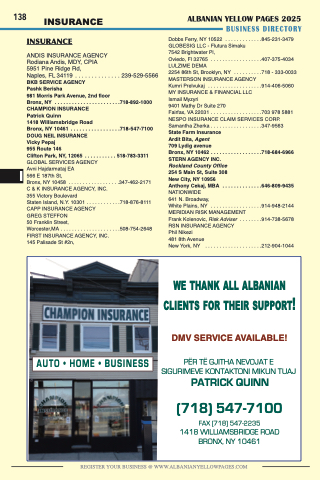 Bronx,NY .......................718-892-1000 CHAMPION INSURANCE