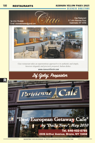 180 RESTAURANTS ALBANIAN YELLOW PAGES 2025 BUSINESS DIRECTORY