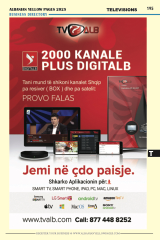 ALBANIAN YELLOW PAGES 2025 BUSINESS DIRECTORY TELEVISIONS 195 REGISTER YOUR BUSINESS @ WWW.ALBANIANYELLOWPAGES.COM T