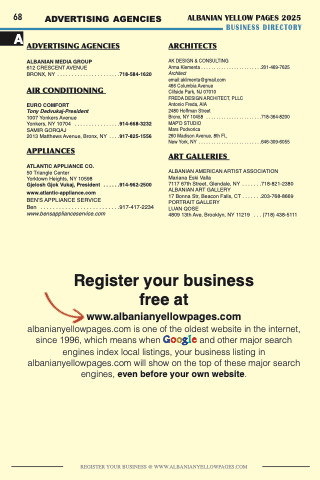 REGISTER YOUR BUSINESS @ WWW.ALBANIANYELLOWPAGES.COM