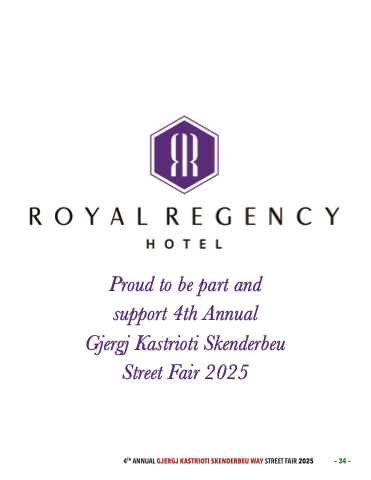 Proud to be part and support 4th Annual Gjergj Kastrioti Skenderbeu Street Fair 2025 4TH ANNUAL GJERGJ KASTRIOTI SKENDERBEU WAY STREET FAIR 2025 — 34 —