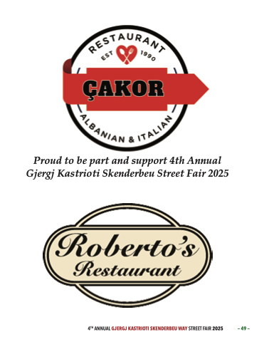 Proud to be part and support 4th Annual Gjergj Kastrioti Skenderbeu Street Fair 2025 4TH ANNUAL GJERGJ KASTRIOTI SKENDERBEU WAY STREET FAIR 2025 — 49 —