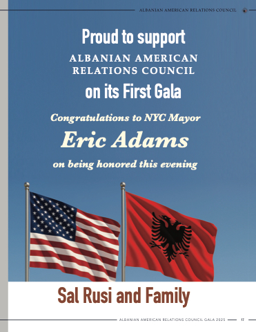 Proud to support AlbAniAn AmericAn relAtions council on its First Gala Eric Adams on being honored this evening Congratulations to NYC Mayor AlbAniAn AmericAn relAtions council Sal Rusi and Family ALBANIAN AMERICAN RELATIONS COUNCIL GALA 2025 17