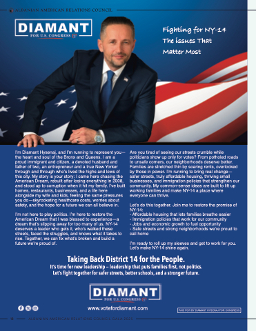PAID FOR BY DIAMANT HYSENAJ FOR CONGRESS