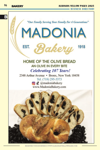 B 96 BAKERY ALBANIAN YELLOW PAGES 2025 BUSINESS DIRECTORY REGISTER YOUR BUSINESS @ WWW.ALBANIANYELLOWPAGES.COM