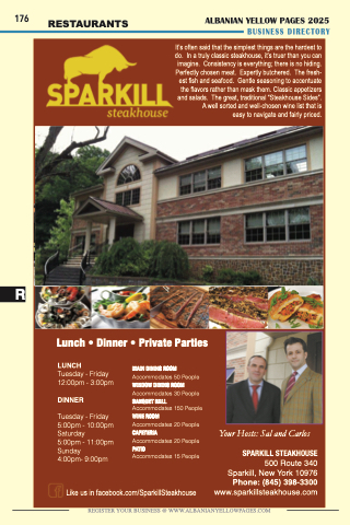 500 Route 340 Sparkill, New York 10976 Phone: (845) 398-3300 www.sparkillsteakhouse.com